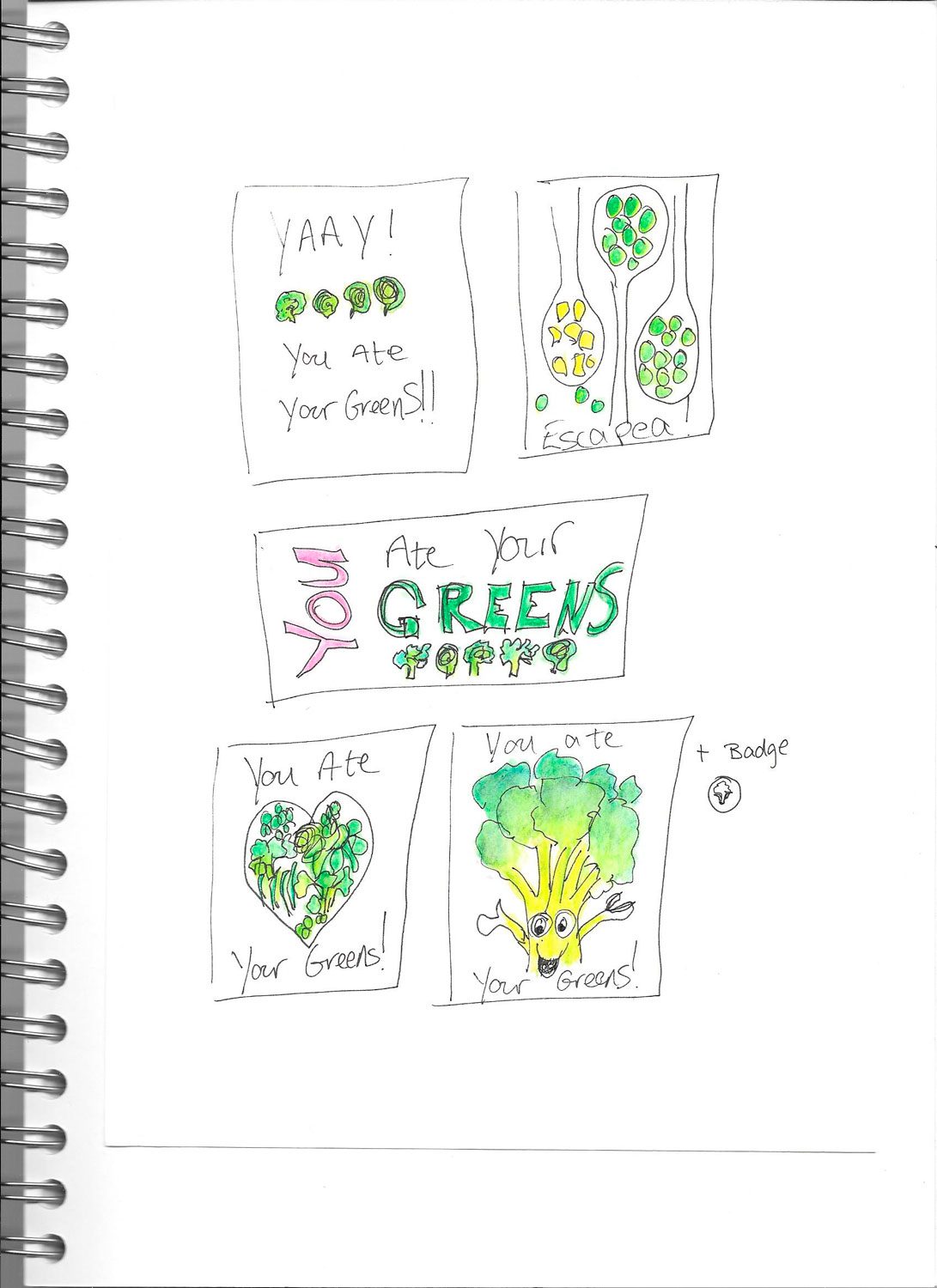 I started thinking about assignment two ahead of time in late August; I thought it would be a good idea to give myself time for things to percolate. I also started talking to friends and families about what they thought were gaps in the greeting card market. This made me think about some of our recent life events and what sort of cards might have been appropriate. This led to a long list and I started doing some thumbnail sketches of the different themes: