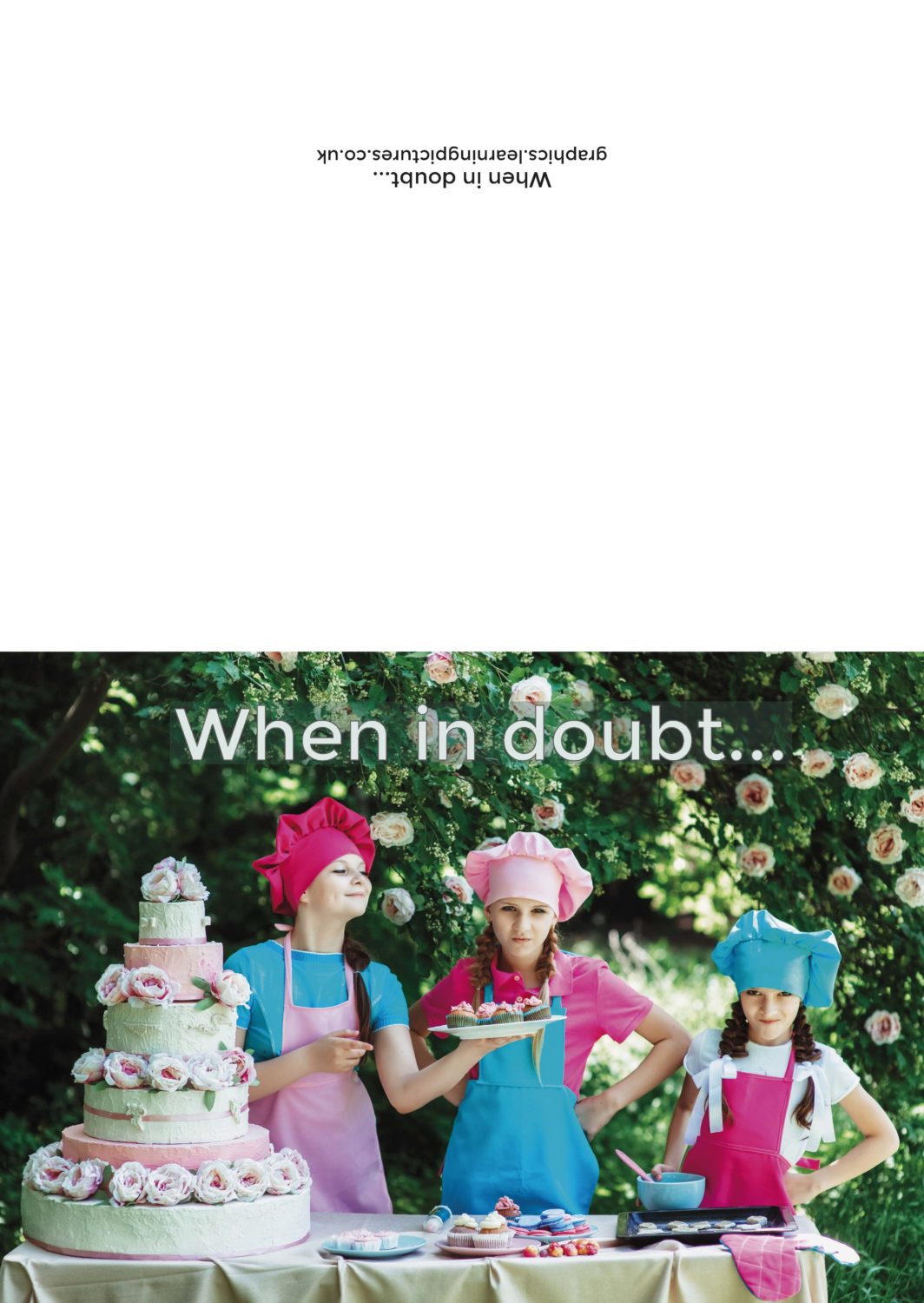 It seemed to me it was too good an image not to use and it conveyed the idea of baking being fun; something you might do when things are getting tough; something to do with friends or your family. I experimented with using text inside and out and feedback suggested that having text on the front worked better. It was also an interesting experience in that sometimes simple solutions work as well as complicated ones as the section on Occam’s Razor in the course materials suggests.