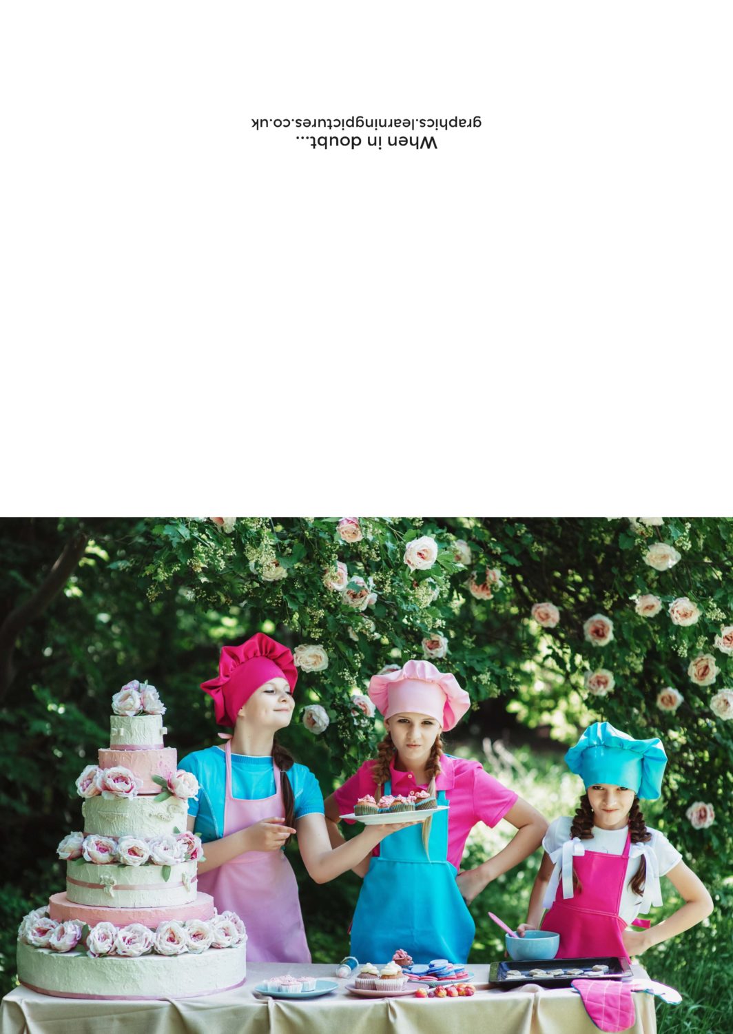 I was in two minds about whether to include this card as it was the simplest of the set and uses a stock photograph rather than one of my own. I have a number of friends who work in the food industry and there is obviously a lot of food content on social media and TV so I thought a cooking/baking card might be fun. Something lighthearted, perhaps in the vein of the ‘Keep calm…’ themes. I did some early sketches, which I was reasonably happy with but then when I was looking online I came across this image, which immediately caught my attention.