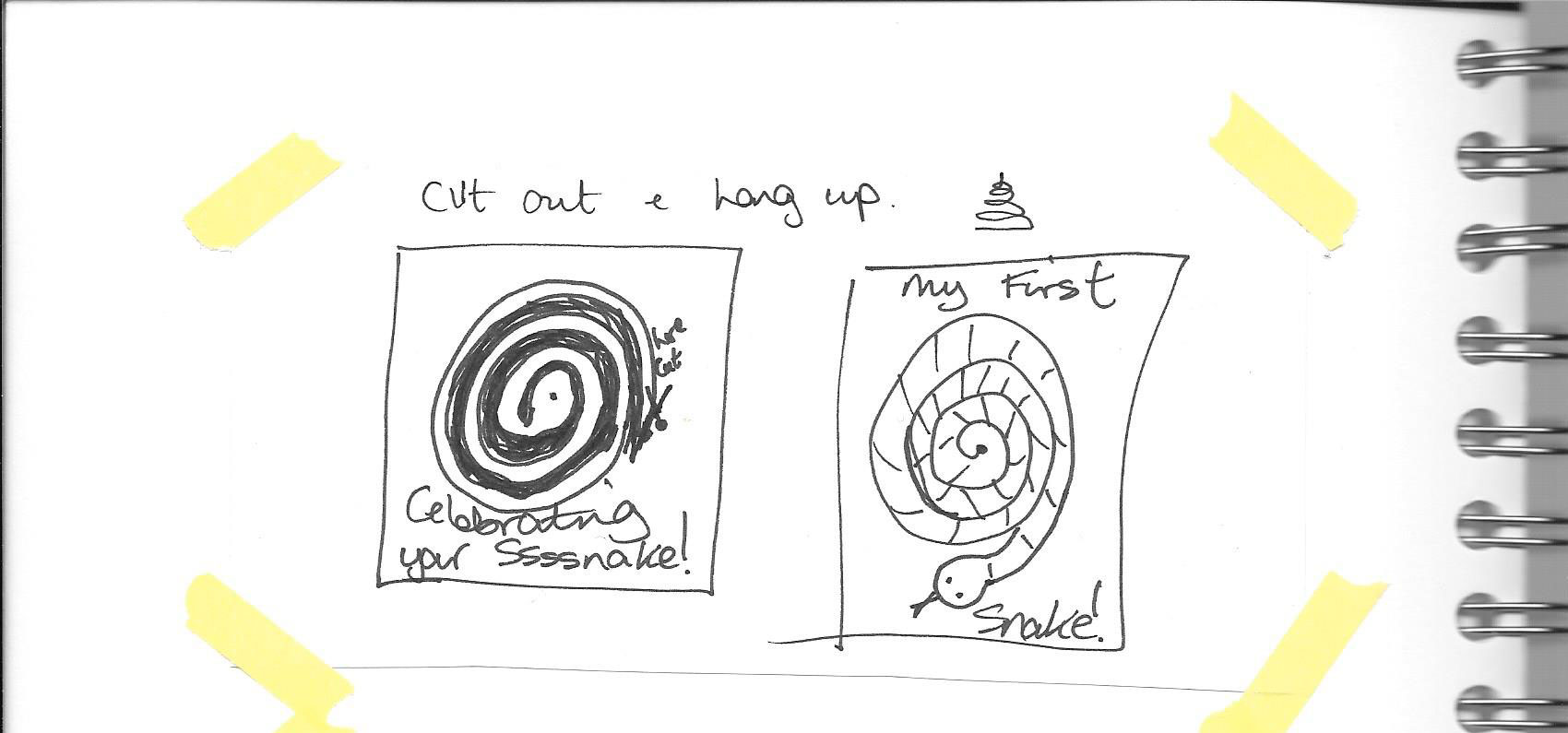 This card started more generally as a congratulations on a new kitten/pet idea and when I did some research it seemed like there were already quite a lot of these available particularly for furry pets. What I didn’t find was anything for reptiles and as a friend have given their son a snake a while ago it made me think this might be a better direction to take.